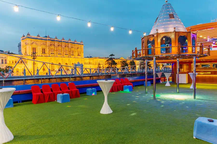 Istanbul dinner cruise boat departure port is Kabataş. It is right across the Kabataş stop, which is the last stop of the Kabataş tram. It is 5 minutes walking distance from Dolmabahçe Palace.